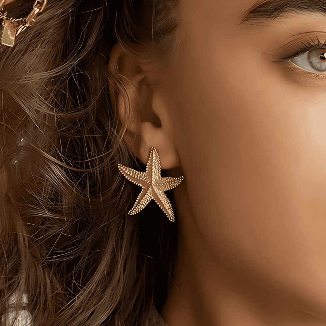 Tuokaa meren kauneus ulkonäköönne Aria Meritähden Korvakorujen avulla. 18K kultapinnalla päällystetyt, nämä vedenkestävät korvakorut ovat hypoallergeeniset ja suunniteltu koko päivän käyttöön, missä tahansa päiväsi viekään.