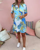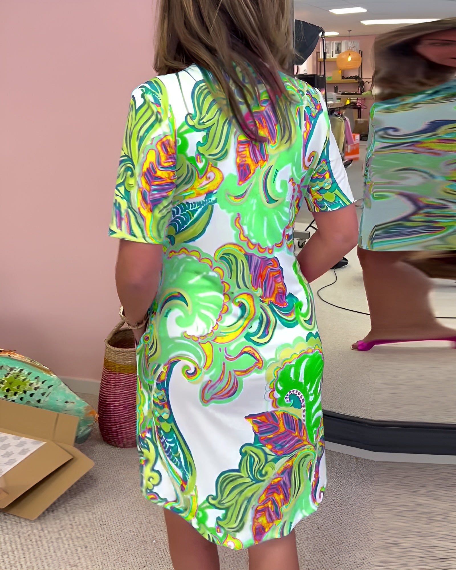 Ellen™ | Kevyt perhoskuvioitu mekko pyöreällä pääntiellä