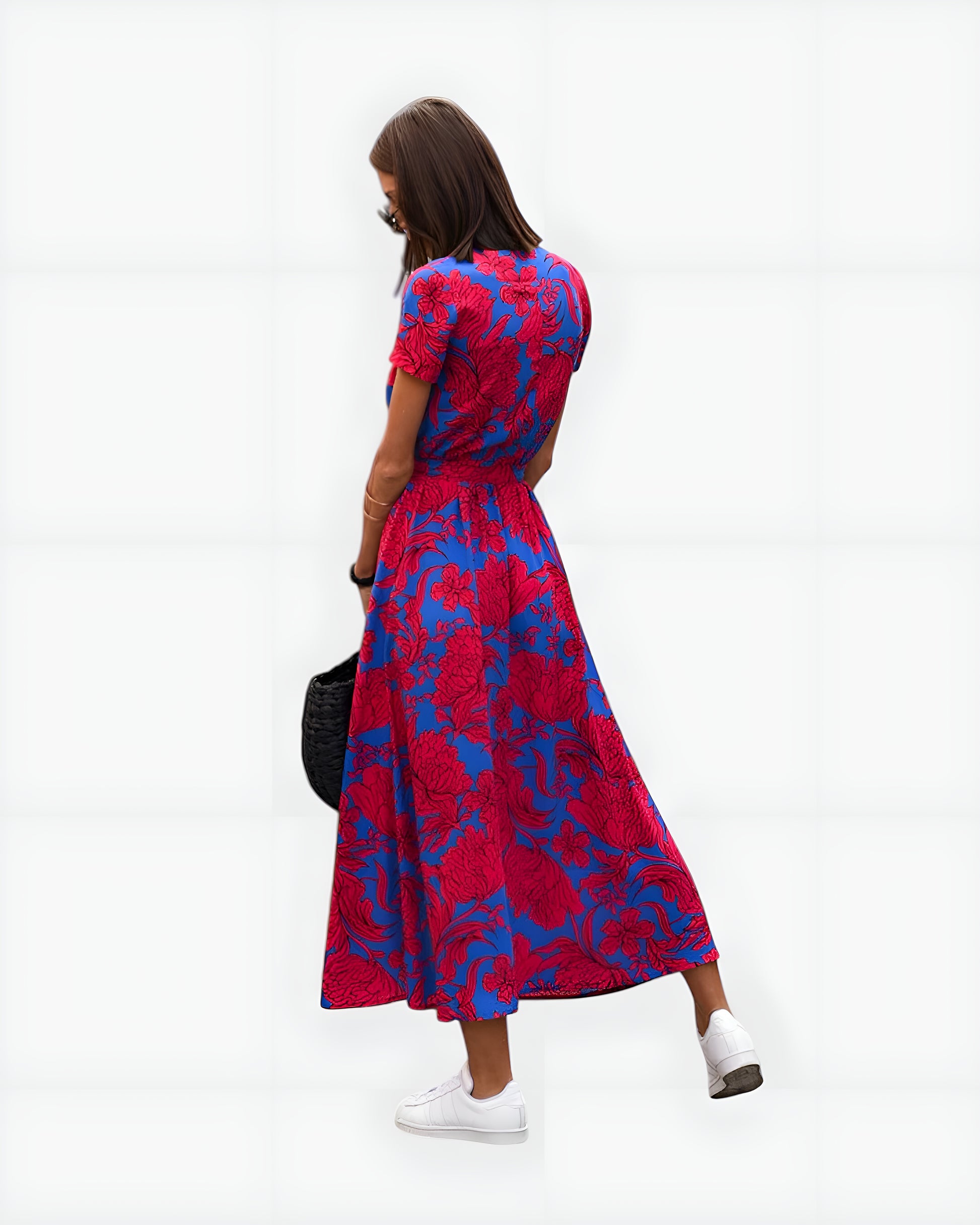 Ellen™ | Kevyt perhoskuvioitu mekko pyöreällä pääntiellä