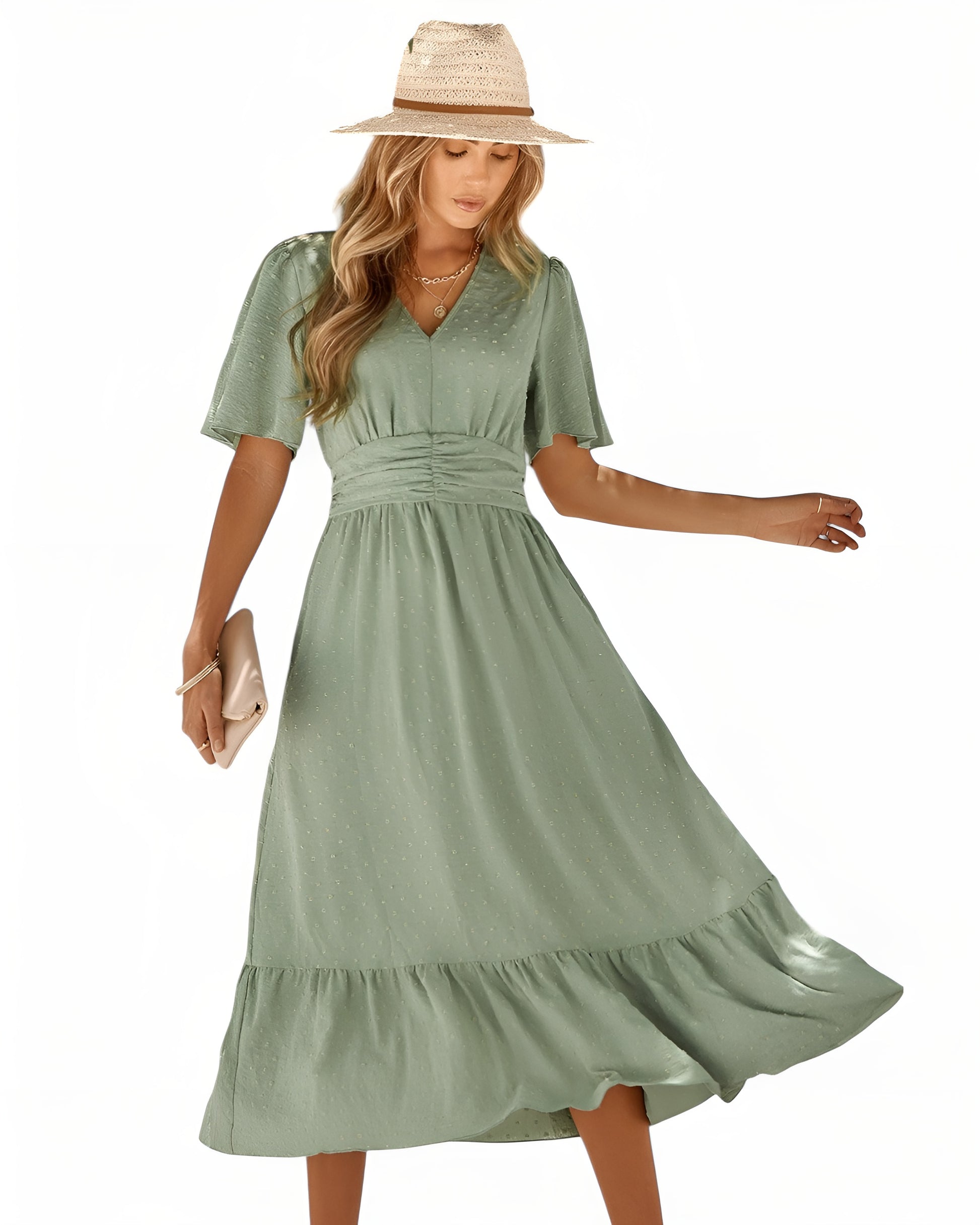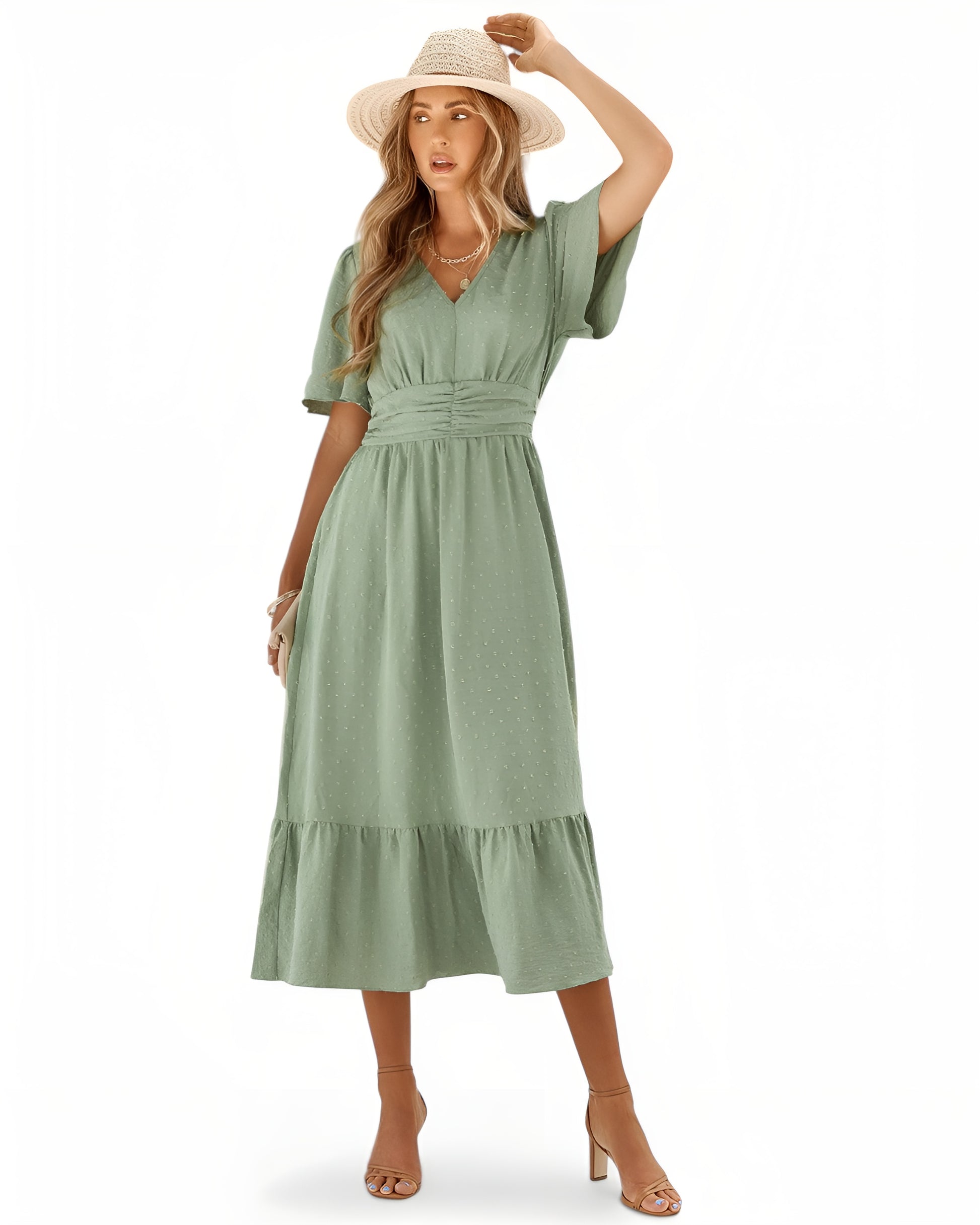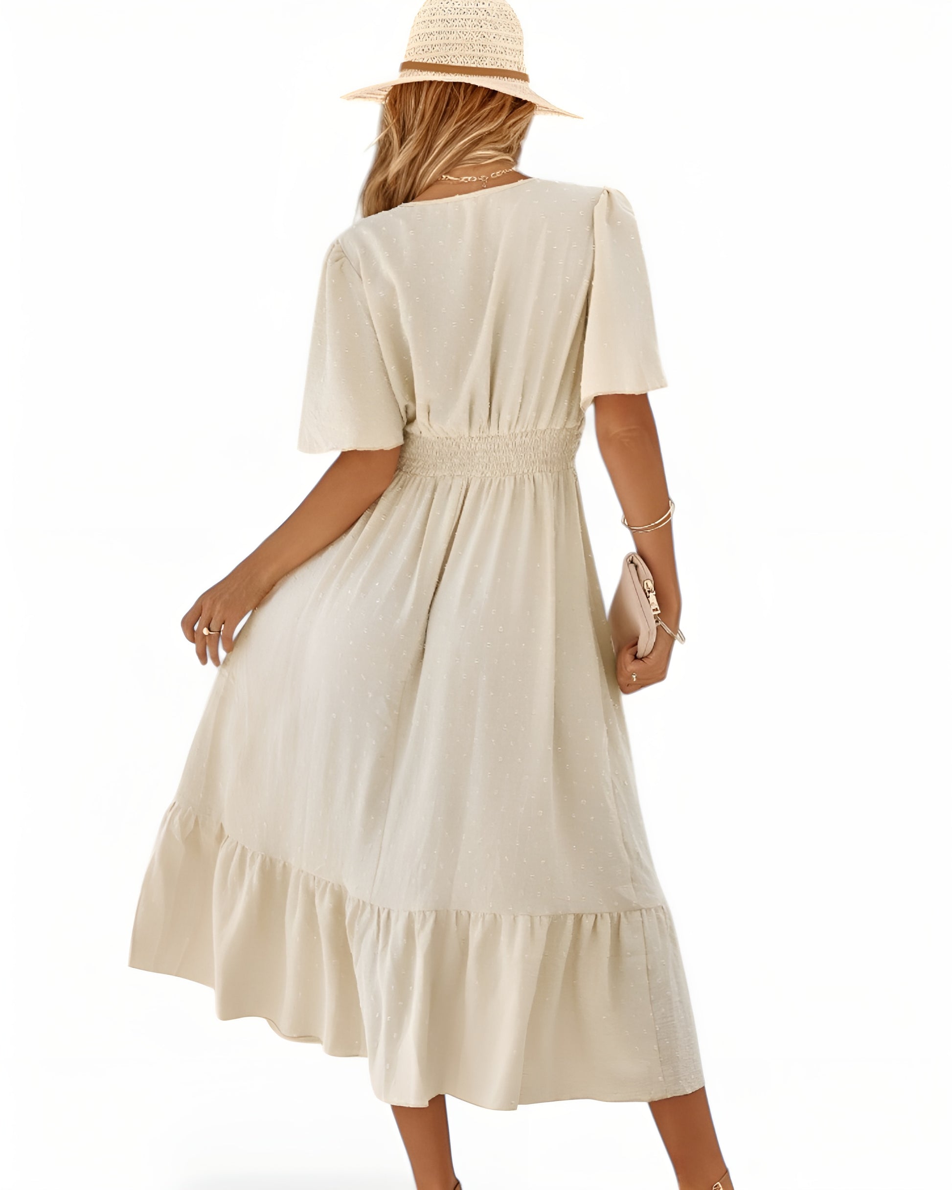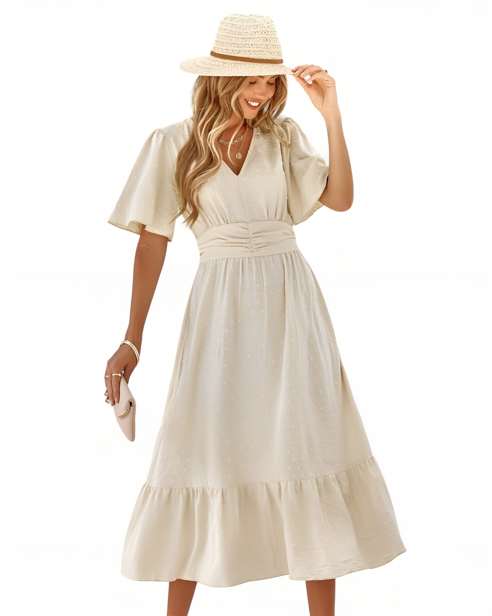 Lilja™ | Elegantti mekko V-pääntiellä ja lyhyillä hihoilla