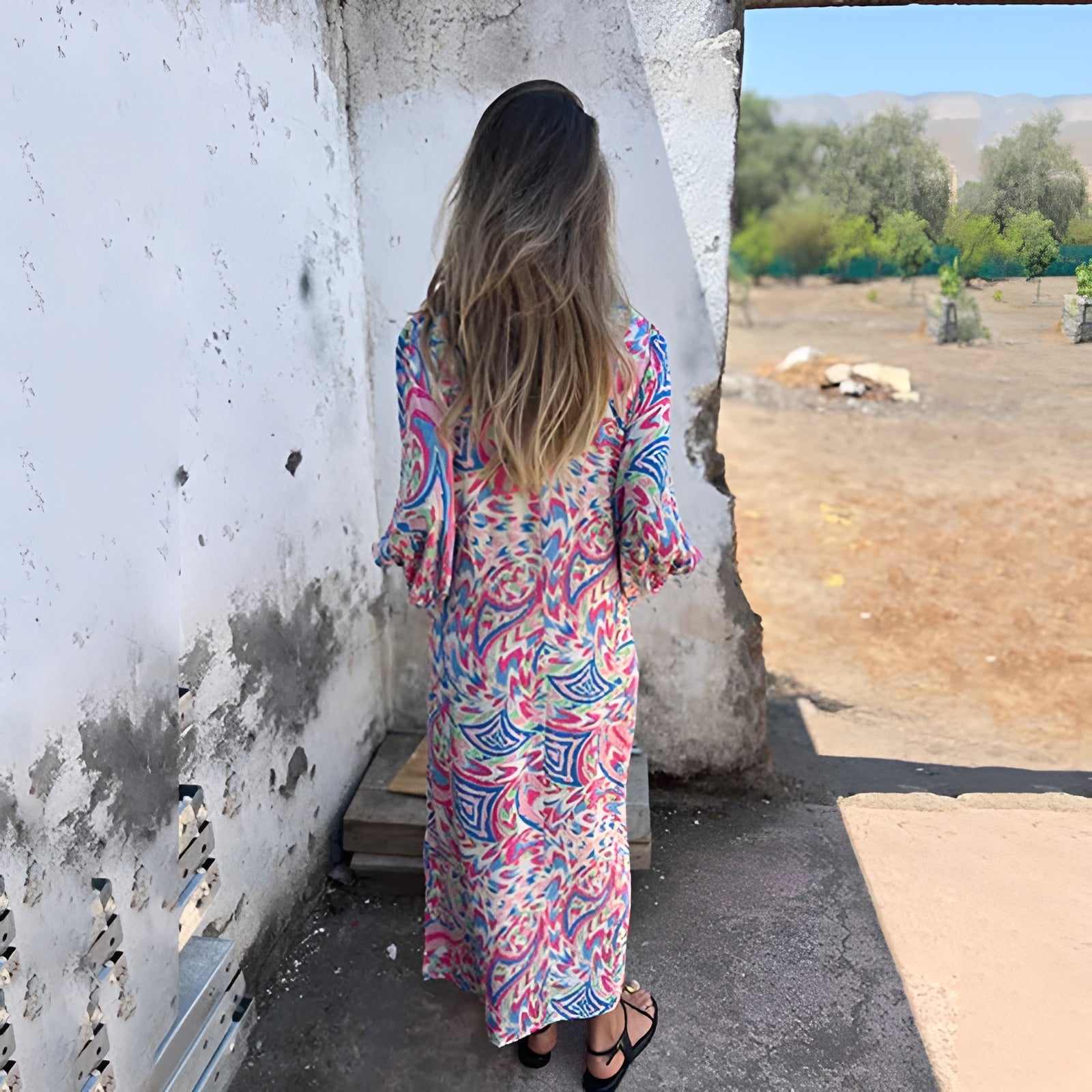 Lowri – Tyylikäs maxi-mekko V-päällä ja taskuilla