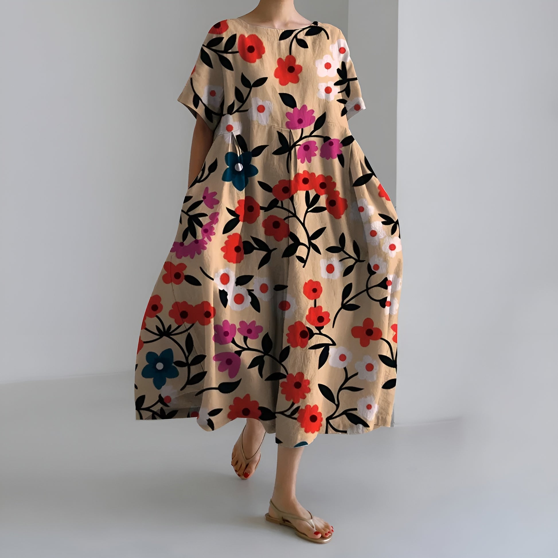 Maartje™ | Taiteellinen maksimekko vintage-kukkakuosilla ja huolettomalla eleganssilla