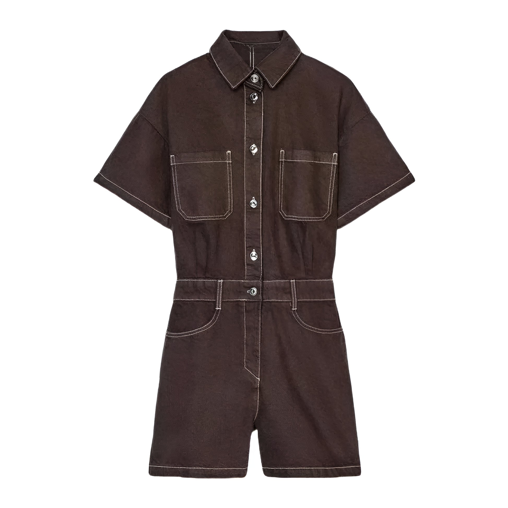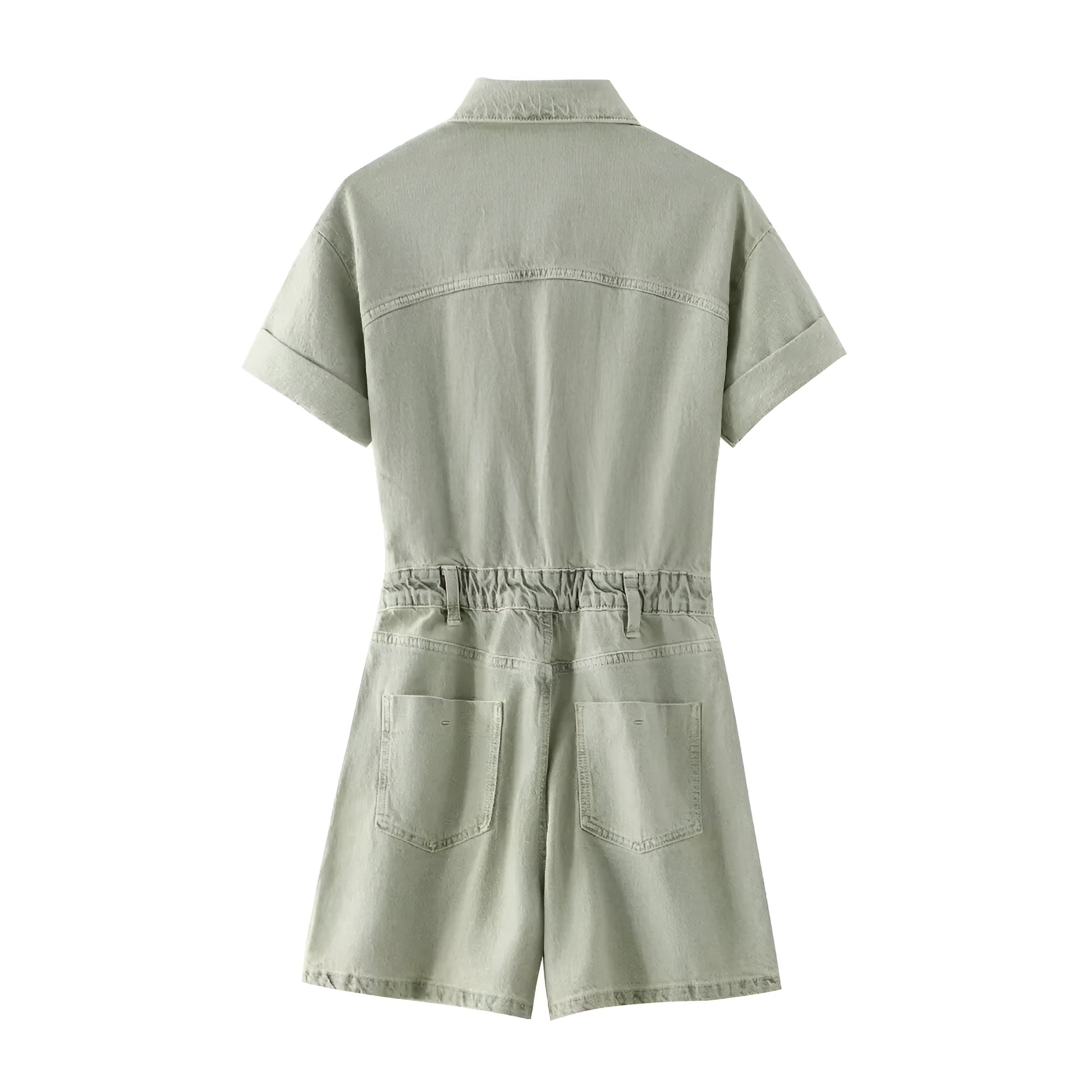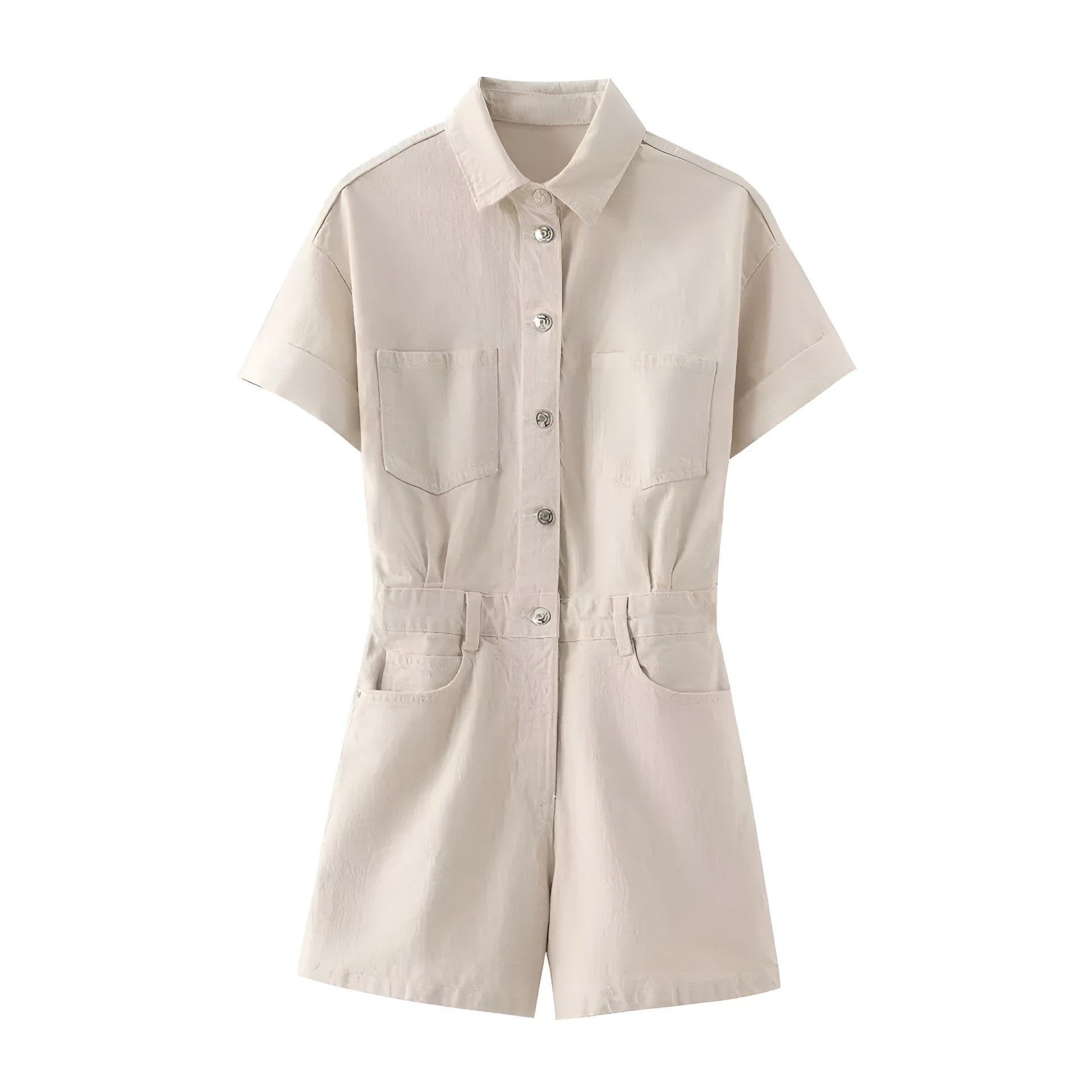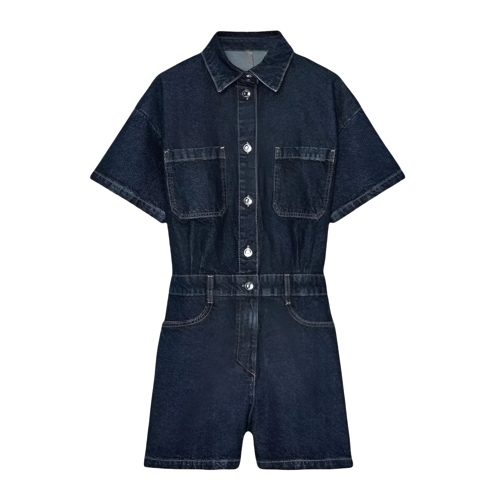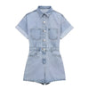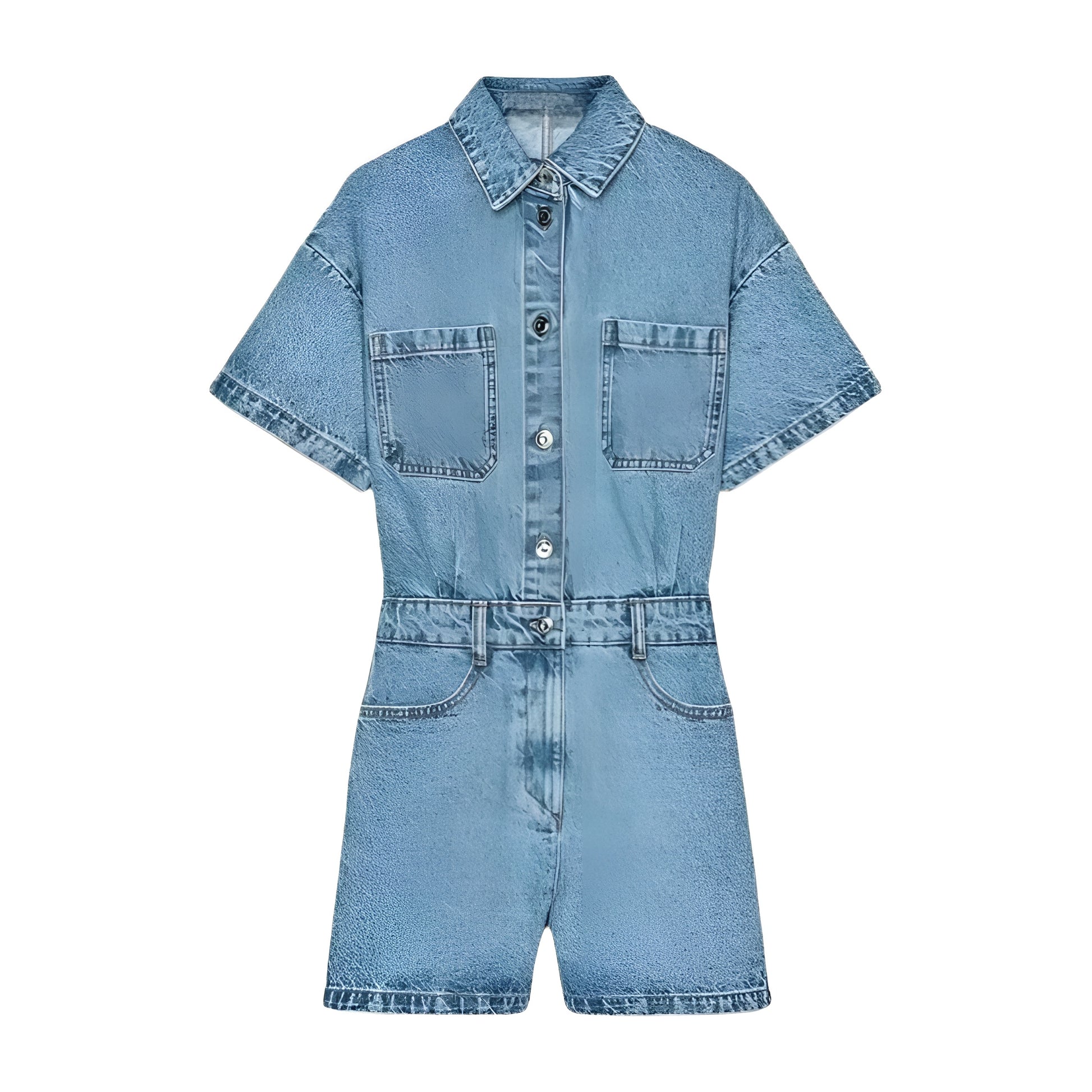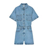 Kevyttä ja hengittävää denim-kangasta. Haalarissa on mukava, hieman väljä istuvuus, joka korostaa kauniisti vyötäröä. Tyylikkäät taskuyksityiskohdat tuovat trendikästä ilmettä ja lyhyet lahkeet tuovat kesäfiilistä.