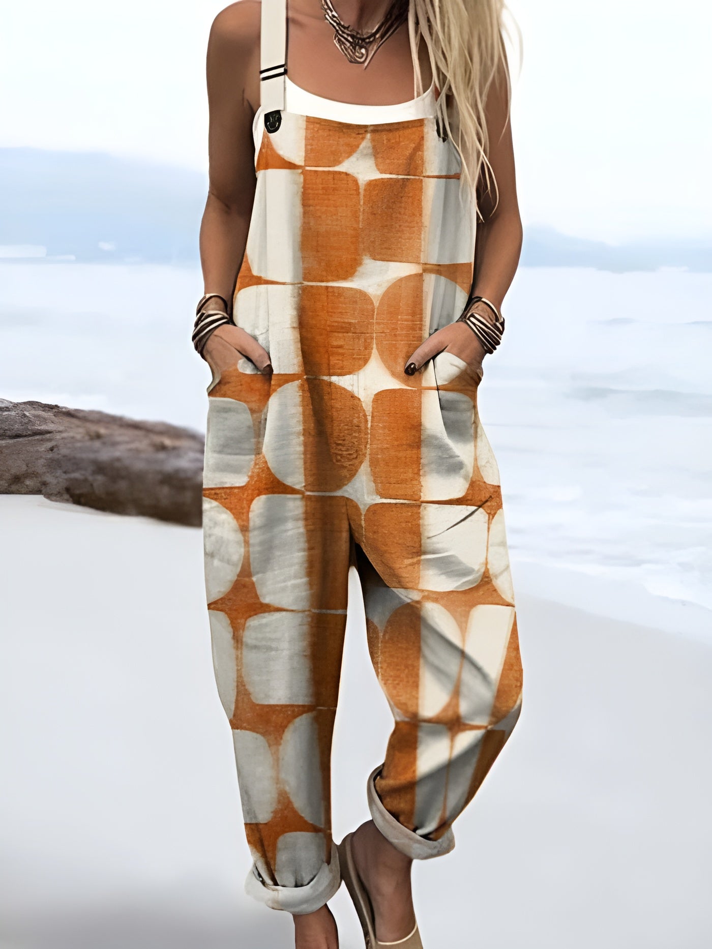 Aukje™ | Abstrakti, geometrinen taidekuvioitu jumpsuit leveillä lahkeilla naisille
